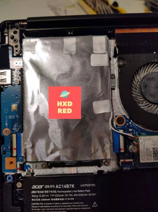 - 将硬盘位的金属贴纸撕开,卸下 4 颗螺丝。