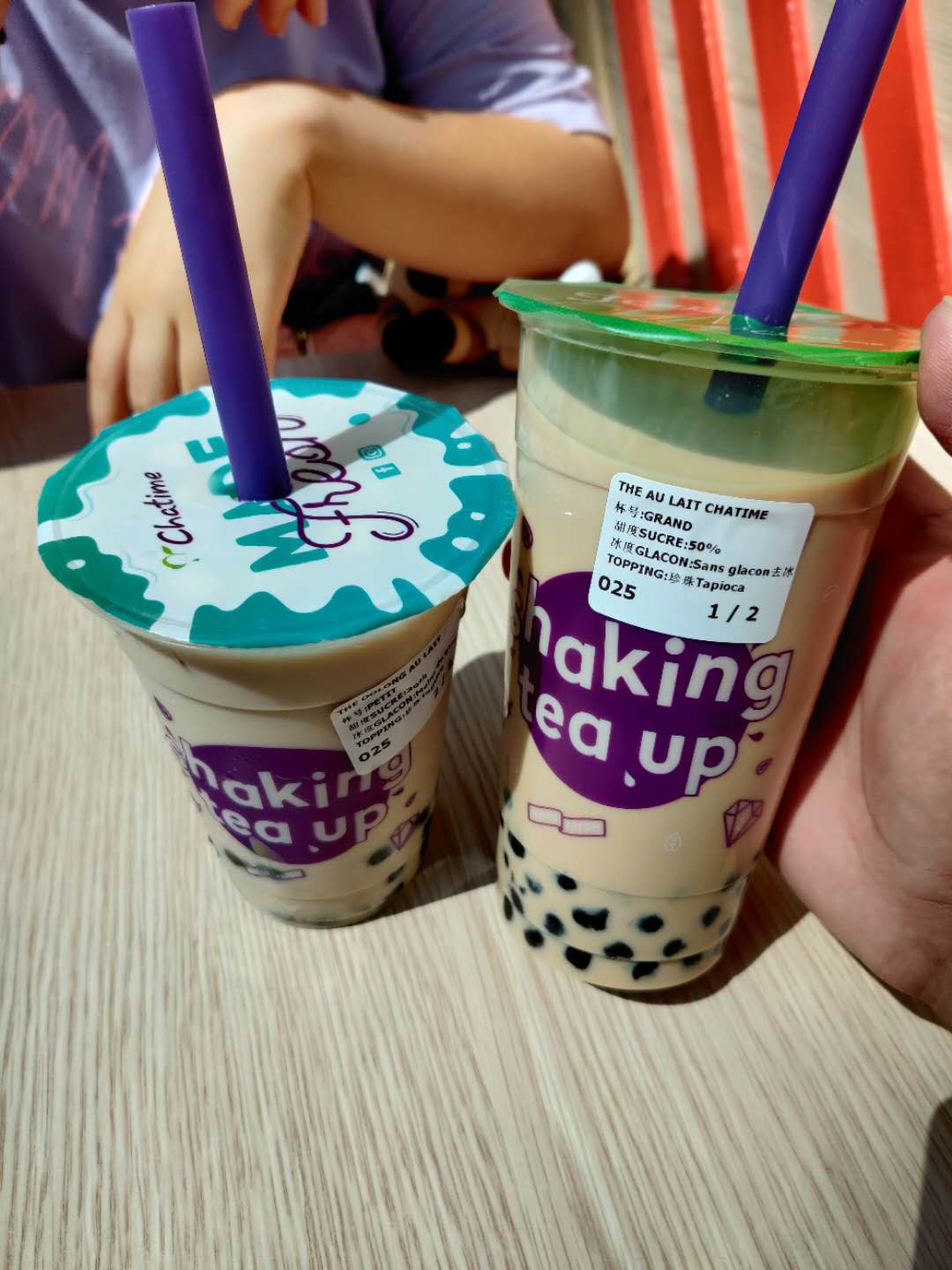这个是在 Val d’Europe 商场里面的一家奶茶店买的,奶茶店叫做 Chatime,50%的甜度甜疯了没喝完。当年来到法国喝的第一杯味道正常的奶茶就是它,但是巴黎有其他更好的选择,反正大家价格都一样,那为什么不喝 Machi Machi 呢?
