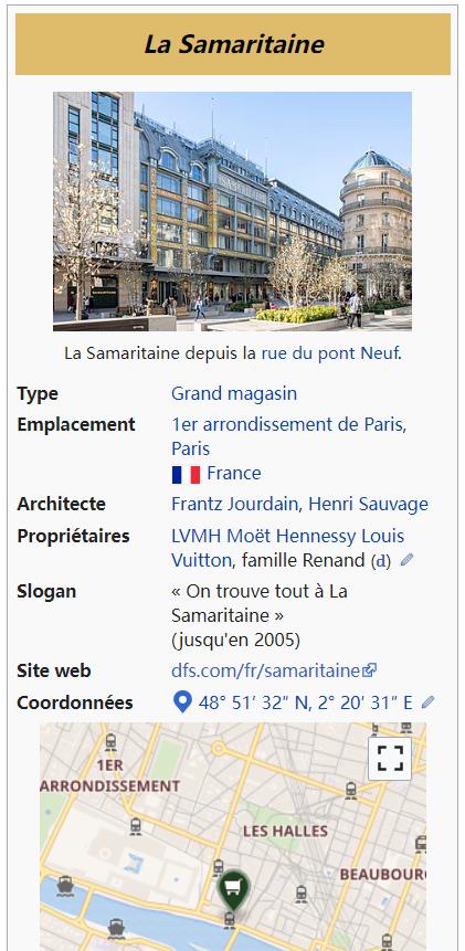 MV是个穿越故事,能让周杰伦穿越的地点是什么来头呢?开头建筑的外侧和周杰伦保安服的背后都指明了方向——Samaritaine,也就是莎玛丽丹百货商场(9 R. de la Monnaie, 75001 Paris)。莎玛丽丹是巴黎著名的百货公司,有100多年的历史。从2005年就开始停业整修,据说本来是2017年开业,后来推到2018,再推到2019,一直拖到2021年才重新开业。(我反正没去过)