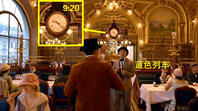 在莎玛丽丹弹钢琴后,杰伦先是在早上9:20穿越到了著名的蓝色列车餐厅,这个9:20正好和1920年呼应。在这里,他给马格利特表演了个球,掰弯了达利的汤匙。紧接着他去见了常玉,给常玉也表演了铁树开花。常玉在巴黎时住的是蒙帕纳斯大道(Boulevard du Montparnasse)。