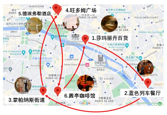 之后周杰伦在一间画着大片莲花的房间里见到了莫奈,毕导问了下其在巴黎的朋友,她说这里是一家叫Hotel d’Evreux的酒店,当事人说其师姐也在那里做过核酸(狗头)。最后杰伦在圆亭咖啡馆看到了徐志摩并秀了一波画。下面是周杰伦在巴黎的穿越图(来自 周杰伦新歌取景地能做核酸?狂看100遍mv后,这些彩蛋我笑死!):