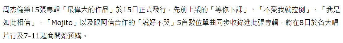 当然了,《最伟大的作品》发布当天我去看看台媒的娱乐新闻,其实这张专辑还包含了之前的5首单曲,也就是说这张专辑的大部分我们都已经听过了。啊这,诚意略显不够(狗头)。