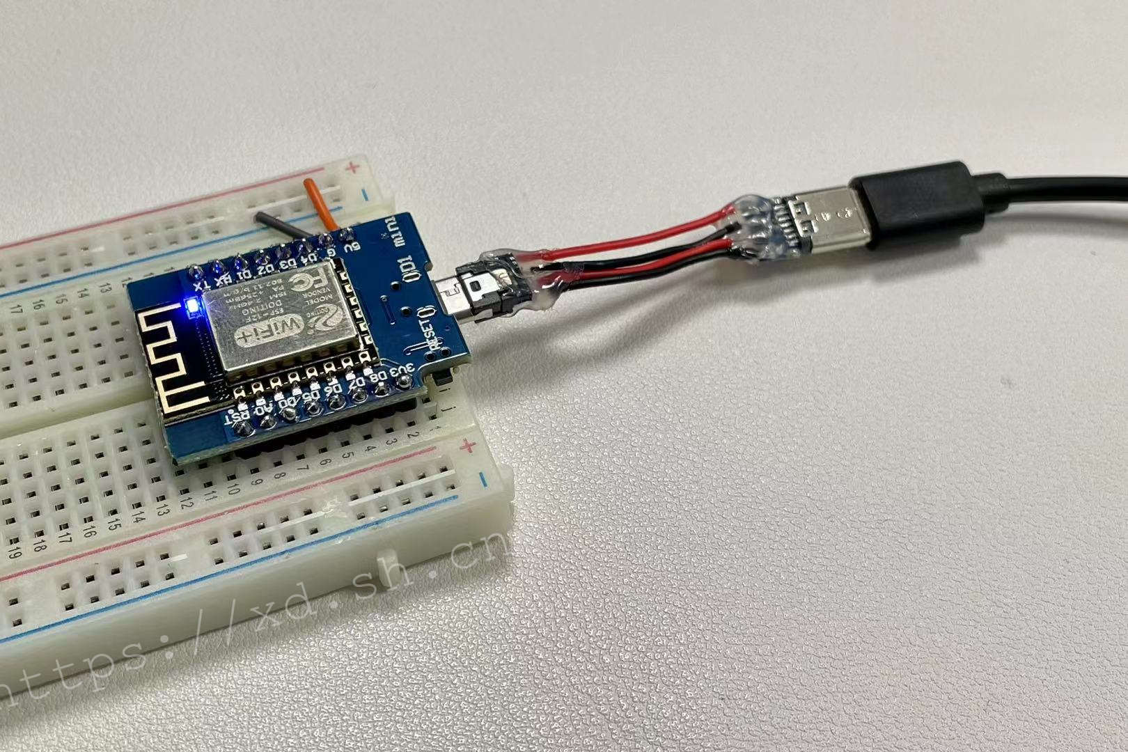 试用该转接器:将转接器 Micro USB 部分插入到 D1 mini (什么是 D1 mini?可以查看这篇文章《性价比 + WIFI + ARDUINO:开发板 D1 MINI》)上的 Micro USB 的母口,经过测试其可以正常地供电和传输数据。