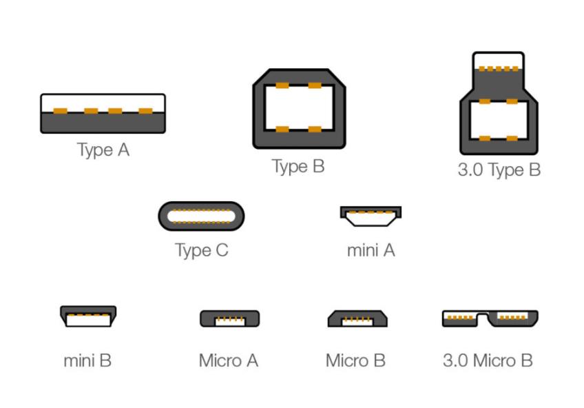 USB Type-C,又称 USB-C,是一种通用串行总线(USB)的硬件接口形式,外观上最大特点在于其上下端完全一致,与 Micro USB 相比这意味着用户不必再区分 USB 正反面,两个方向都可以插入。USB 的几种常用的接口形状如下图所示: