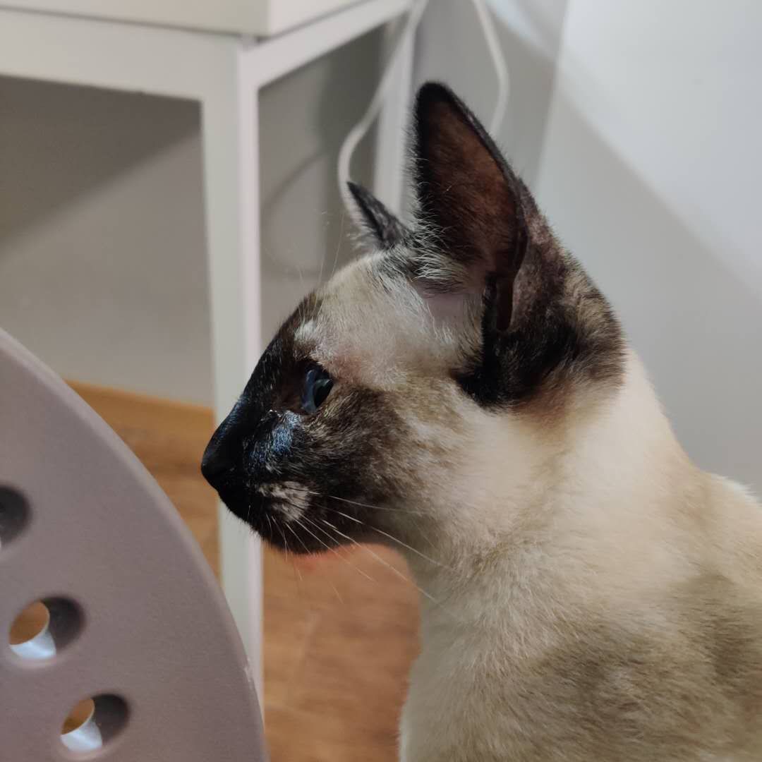 第二天我就一直在刷闲鱼,虽然闲鱼上买品种猫基本上都是宠物贩子,最后刷到一只对眼的暹罗。这只暹罗已经不算小了,接近六个月大(生日是2020年10月21日),不过从描述来看是家庭繁殖且打过疫苗、驱过虫,母亲是传统虎斑暹罗、父亲是红重点现代东短,会用猫砂、粘人。