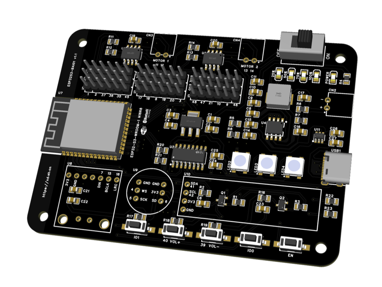 之前写的一篇文章 大模型 AI 对话+控制实验,又手搓了一块开发板 – 晓栋XD,当时是为了赶上小智 AI 的那股风,把原本需要用面包板才能搭建的所有器件都集成到一块板子上,并且还预留了直流电机和充放电的位置,方便扩展。
